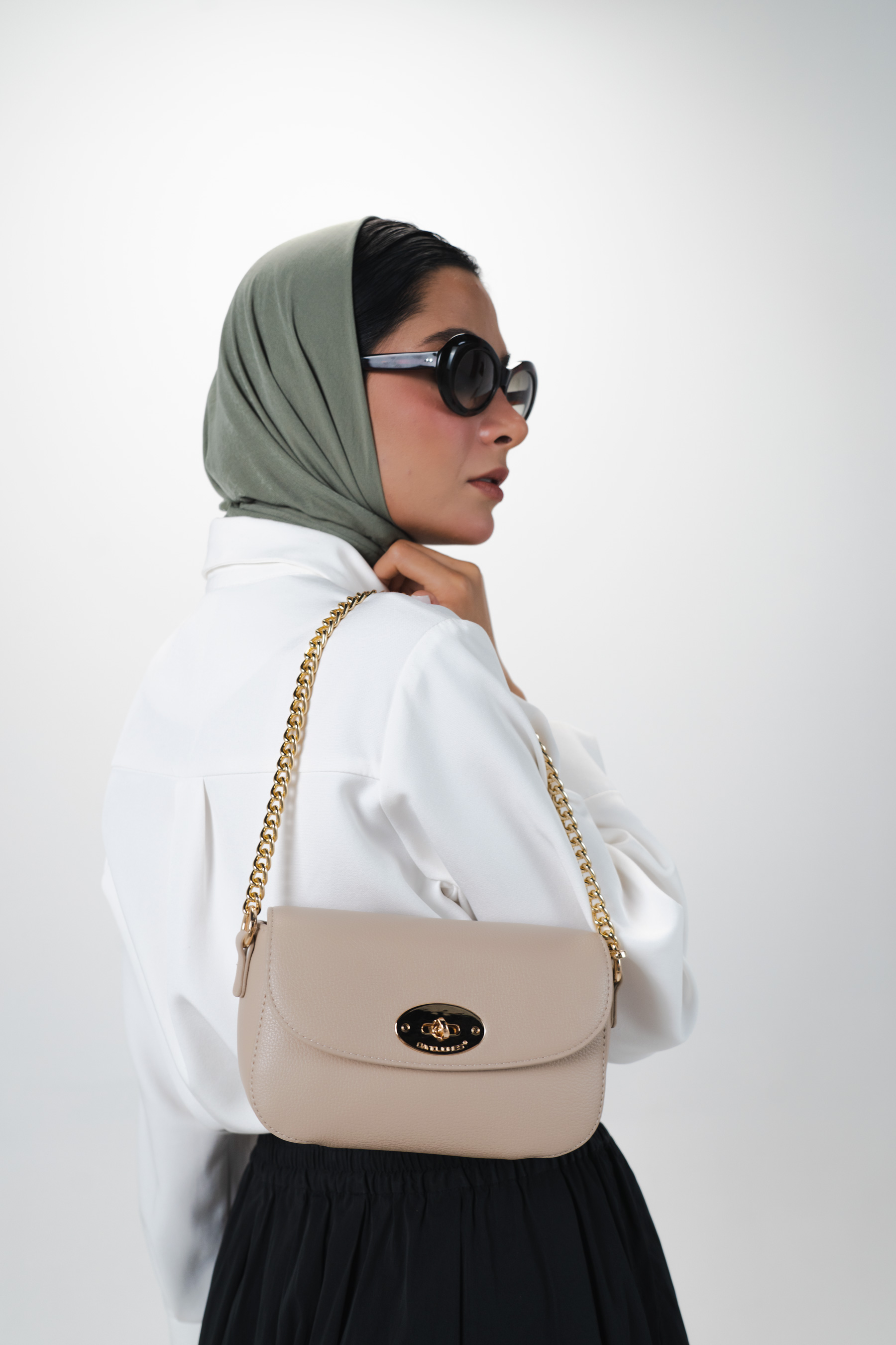جزئیات فلزی: یراق‌آلات فلزی با آبکاری براق که جلوه‌ای لوکس به کیف می‌بخشند.